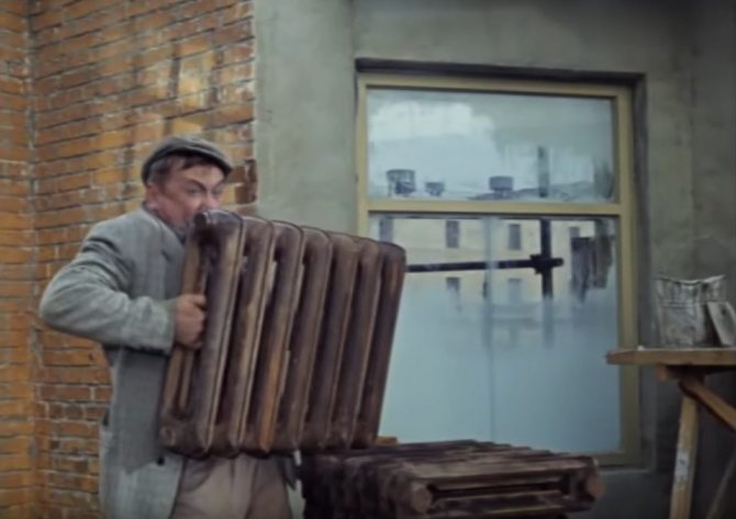 En effet, vous pouvez commencer par les inconvénients. Le principal inconvénient d'un radiateur en fonte est son poids. Les batteries sont vraiment lourdes. Ainsi, une seule section de l'unité de chauffage sans eau pèse sept kilos et demi. Et ce n'est qu'une section ! Et si vous tenez compte du fait qu'ils installent généralement de six à dix nervures, la structure pèsera plus de cinquante kilos.