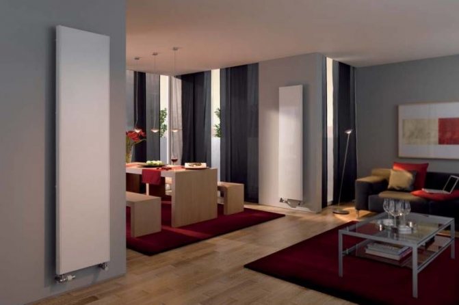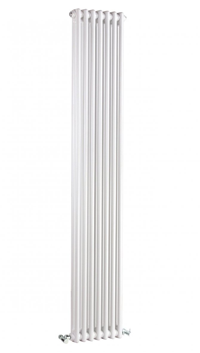 - Les radiateurs verticaux sont divisés en radiateurs tubulaires et panneaux. Ils diffèrent par leur «croissance», car leur hauteur minimale est de 1 m, tandis que dans les plus ordinaires, elle atteint 600 mm et dans les plus hauts, elle atteint 900 mm. Ces types de piles en acier sont élégantes, chauffent un peu moins efficacement et sont très chères. Cela est particulièrement vrai pour les modèles de créateurs.