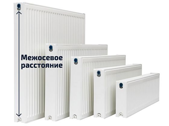 - Distance du centre... Il existe des modèles avec connexion latérale avec un entraxe de 300 à 900 mm. Ceci est important à considérer lors de la conception d'un système de chauffage.