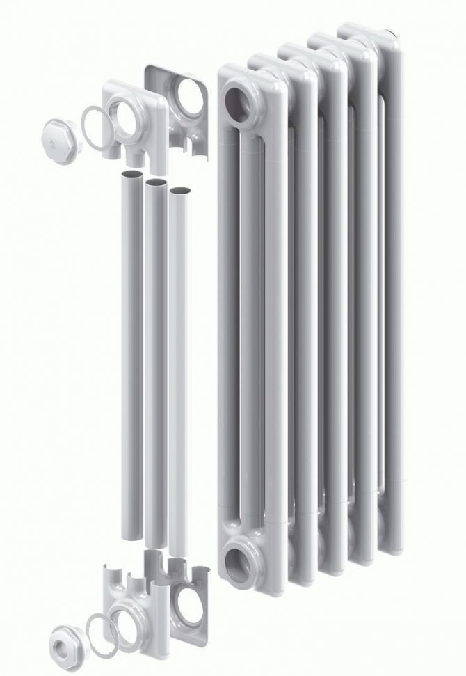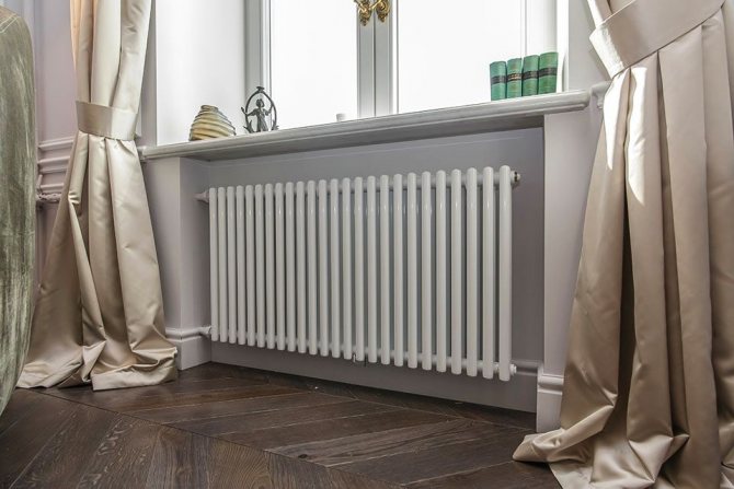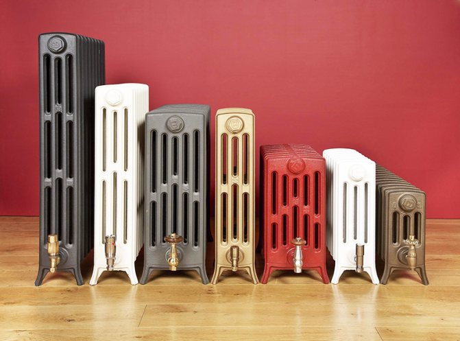 Radiateurs en fonte... Le type le plus ancien de radiateurs de chauffage. Leur forme est simple et stricte, la façade est lisse et le design est sobre. Ils chauffent longtemps, mais sont idéaux pour les systèmes avec chauffage central. Ils sont durables, peu coûteux, durent environ 50 ans.