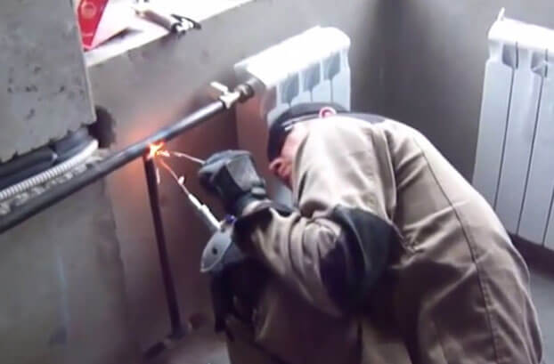 - À travers des fissures dans les tuyaux. Sont le résultat d'un soudage de mauvaise qualité ou de défauts d'usine. Le plus souvent, ils se produisent aux joints des tuyaux de cerclage, aux endroits de leur jonction les uns avec les autres et avec la colonne montante. Souvent, le problème provient de la corrosion électrolytique lorsque les propriétaires court-circuitent le zéro ou la terre des appareils ménagers au circuit de chauffage.