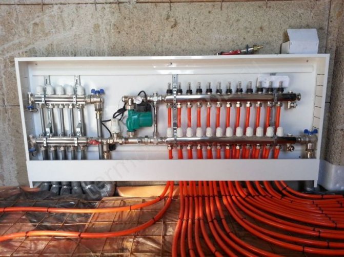 Tout d'abord, il convient de noter qu'une unité de mélange est utilisée pour un plancher chauffant à eau, car le même liquide de refroidissement circule à la fois dans le système de chauffage par le sol et dans les radiateurs.