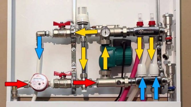 Selon les tâches à résoudre, l'unité de mélange du collecteur peut être équipée de différentes manières.Il est toujours installé avant le circuit de chauffage, mais le lieu d'installation lui-même n'est pas spécifié exactement. Par exemple, un nœud peut être fait dans une pièce avec un sol chaud ou dans une chaufferie.