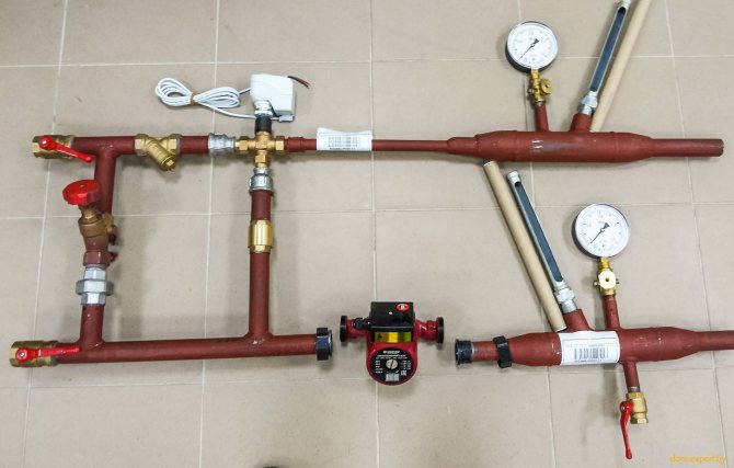 Par conséquent, afin de réduire le degré d'échauffement du fluide de travail à l'entrée du circuit, l'unité de mélange pour le chauffage par le sol est installée. Il mélange des flux de liquide de refroidissement à différentes températures. En conséquence, sa température baisse et de l'eau est fournie au circuit de chauffage.