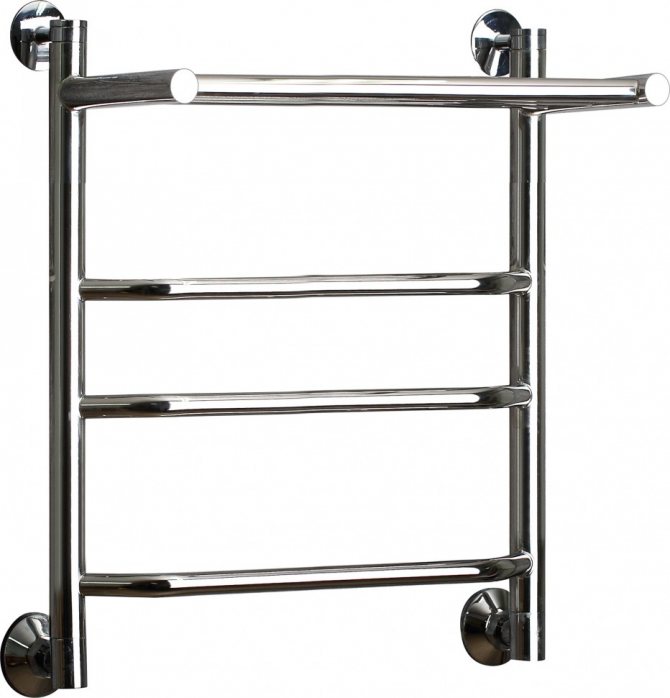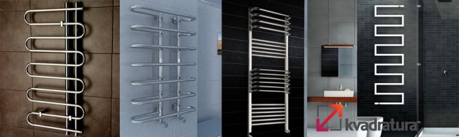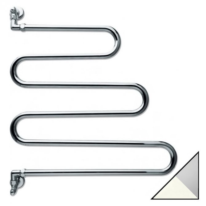Si vous avez besoin d'un modèle fonctionnel pratique, il est préférable de choisir un sèche-serviettes au design traditionnel - sous la forme d'un serpent ou d'une échelle. Les barres larges sont conçues pour sécher les vêtements et les petits textiles. La symétrie des formes s'intégrera facilement dans un projet de n'importe quelle conception, et les lignes simples et les performances laconiques ne deviennent pas obsolètes au fil des ans.