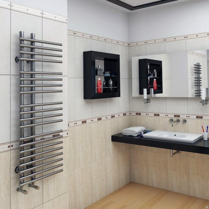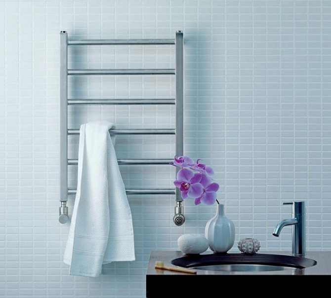 - le diamètre des tuyaux affecte non seulement la fonctionnalité, mais également l'esthétique à l'intérieur. Plus les barres de séchage sont minces, meilleur est le design.