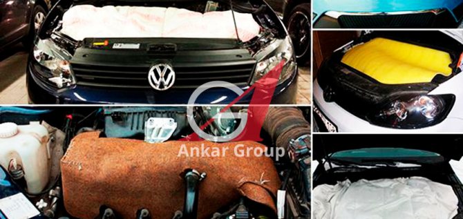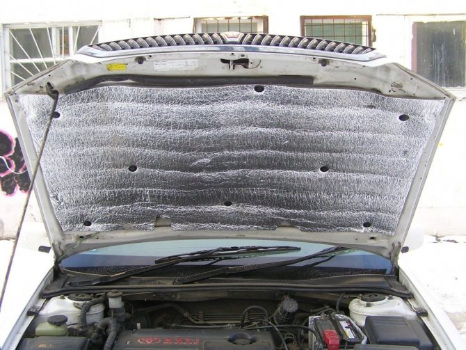 - Il convient également de noter qu'il est possible d'isoler le compartiment moteur d'une voiture à l'aide de matériaux ignifuges de manière complète. Pour ce faire, vous devez fermer toutes les fentes par lesquelles l'air extérieur pénètre sous le capot. Les travaux de ce type obligeront le propriétaire à démonter les éléments individuels installés sur le moteur lui-même, ainsi que les parties de la carrosserie (ailes avant, optiques de tête, pare-chocs avant, etc.).