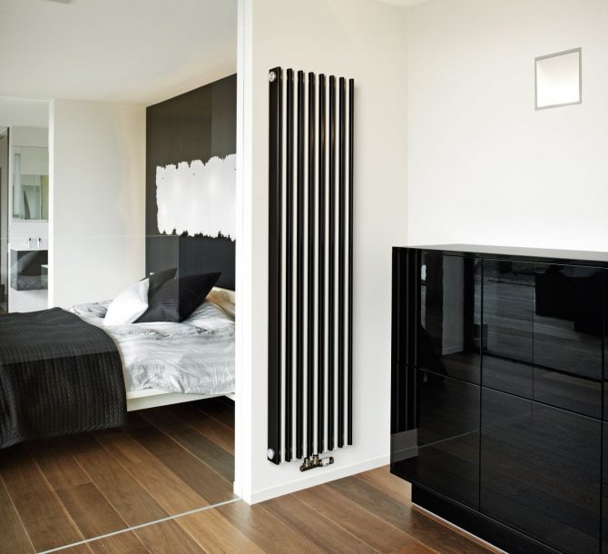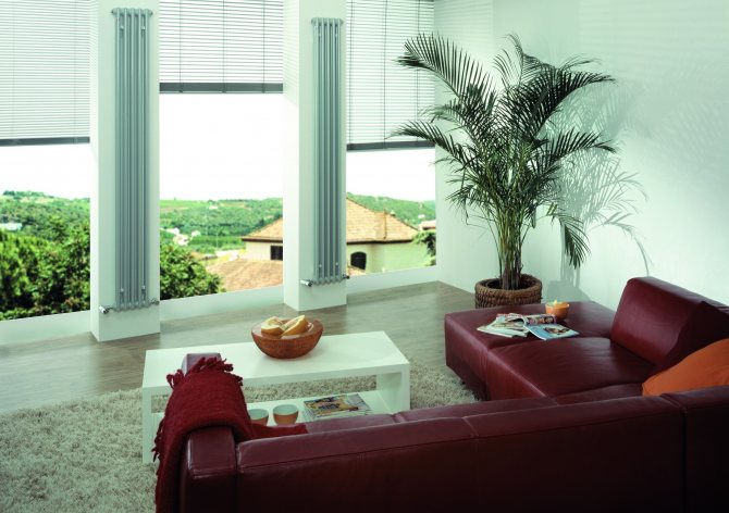 La valeur artistique des batteries avec une installation verticale ne fait aucun doute: bien souvent, vous ne pouvez pas vous en passer, en particulier dans les pièces avec des colonnes, de hautes fenêtres sur tout le mur, un grand nombre d'ouvertures et de niches dans les murs.