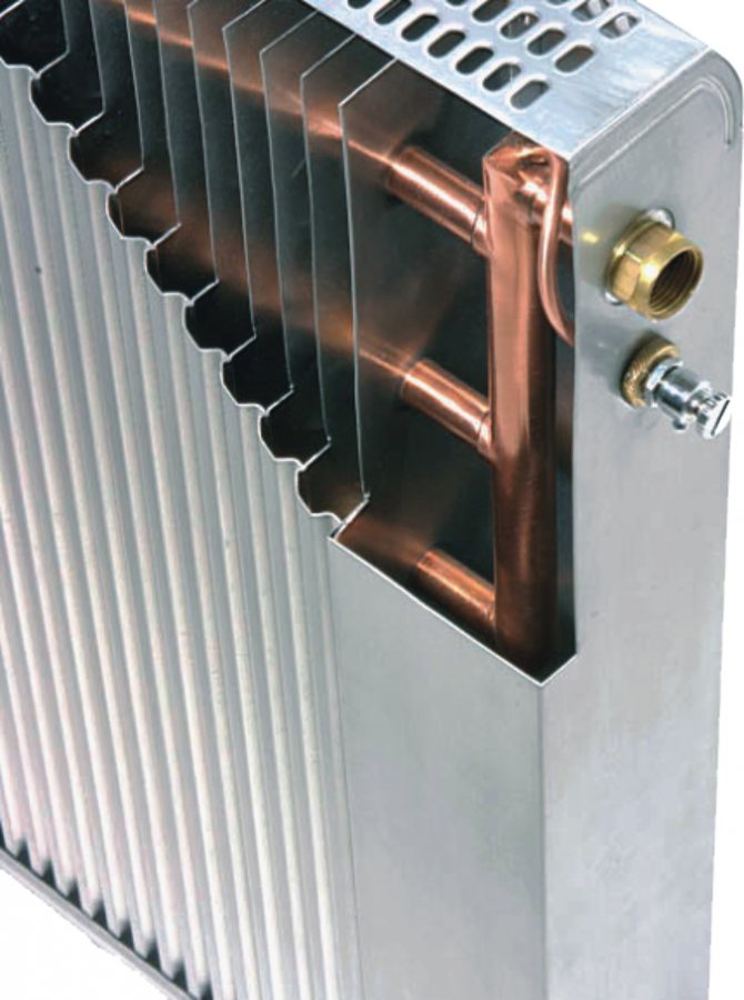 Ce type de radiateurs et de convecteurs, de petites dimensions, présente un transfert thermique élevé. Il s'agit généralement d'un tube en cuivre sur lequel sont fixées des plaques d'aluminium. Cet appareil est caché dans un boîtier en acier peint (parfois trouvé en acier inoxydable). La plupart des fabricants du marché produisent des radiateurs à faible teneur en cuivre-aluminium: