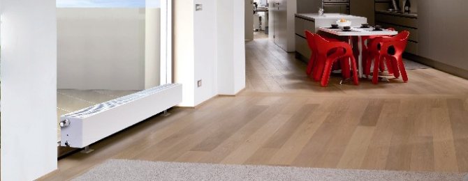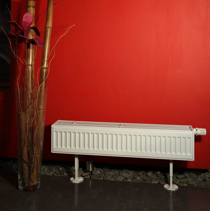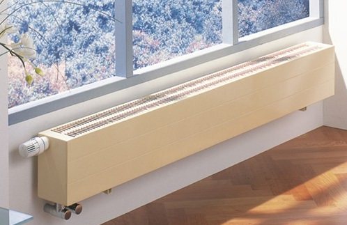 Si vous avez un vitrage panoramique élevé dans votre pièce, vous devez faire attention aux convecteurs intégrés au sol. Le convecteur se compose d'un corps en acier et d'un échangeur de chaleur en cuivre. Il existe également une large gamme de grilles décoratives pour eux. Disponible avec convection forcée (avec ventilateur intégré) et convection naturelle (sans ventilateur). Ce type de radiateur est parfait pour un chalet ou un appartement moderne avec une basse pression dans le système de chauffage.
