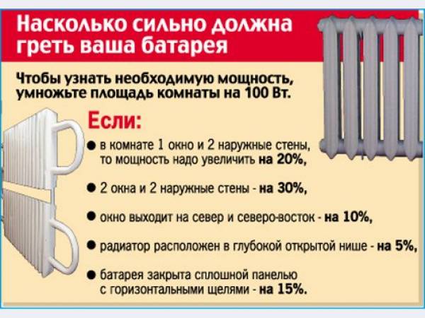 La sélection de l'alimentation par batterie s'effectue en fonction de l'emplacement de la pièce et du nombre d'ouvertures de fenêtres. Dans une pièce avec un mur extérieur et une fenêtre de 10 m². m. pour créer un microclimat confortable nécessite une batterie de 1 kW. Pour une pièce avec une ouverture de fenêtre et deux murs extérieurs, ce chiffre est de 1,2 kW, et pour une pièce avec deux fenêtres et deux murs extérieurs, 1,3 kW est nécessaire. Ces données sont souvent utilisées pour des calculs indépendants. Les professionnels font des calculs de plus en plus difficiles, mais de plus en plus précis.