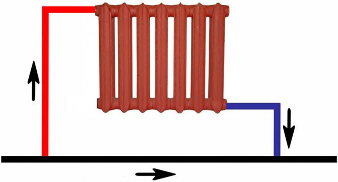 2. Le raccordement de radiateurs avec moins de 10 sections peut être effectué de n'importe quelle manière - en bas, en haut, en diagonale. S'il y a plus de 10 sections, alors il est recommandé de se connecter en diagonale : l'entrée du liquide de refroidissement est en haut, la sortie est en bas.