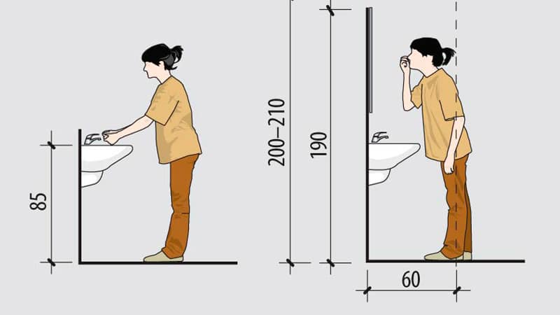 Malheureusement, en termes de confort lors de l'installation d'un évier, les exigences des documents réglementaires semblent au moins dépassées, car les statistiques sur la base desquelles les enfants et les adultes ont été conçus avec la hauteur de l'évier par rapport au sol ont vieilli de quarante ans. Pendant ce temps, la taille moyenne d'un adulte a augmenté de 10 cm et atteint 178 cm pour les hommes et 166 cm pour les femmes.