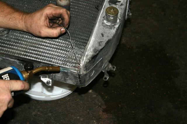 Pour une élimination rapide des fuites des tubes de radiateur perforés... Vous pouvez noyer les tubes du radiateur. Pour ce faire, pliez les deux bords déchirés de chaque tube et serrez-le avec une pince. Cette méthode ne convient que si pas plus de 5 tubes sont percés et si le radiateur est en aluminium et qu'il n'y a aucun moyen de souder.