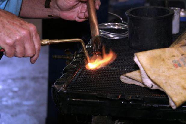 Les radiateurs en cuivre sont réparés avec des appareils plus puissants avec des soudures POS-60 et POS-40. Quant à la technologie, elle n'est pas différente du processus de brasage de l'aluminium.