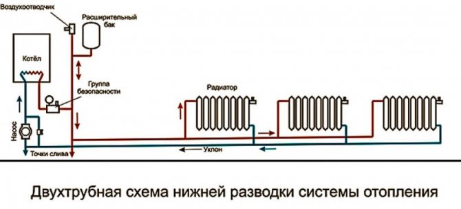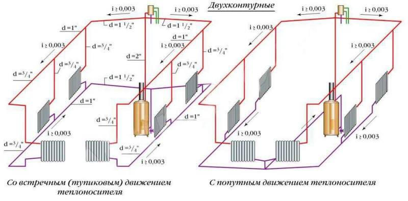 Malgré le coût d'installation plus élevé, les systèmes à deux canalisations sont plus souvent utilisés, car ils conviennent aux bâtiments de n'importe quel nombre d'étages et de configurations. Il convient de garder à l'esprit que la décision d'installer un tel chauffage est mieux prise En construction. Bien que la possibilité d'installation dans une maison finie ne soit pas exclue.