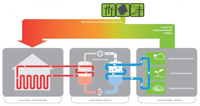 | Pompe à chaleur. Il utilise l'électricité pour pomper de la chaleur dans un bâtiment chauffé à partir d'un environnement avec une température plus basse que les locaux internes - sol, eau ou air. En ce qui concerne le coût d'un kilowattheure de chaleur, une pompe à chaleur est légèrement en retard sur une chaudière à gaz et entre en concurrence avec une chaudière à combustible solide. |