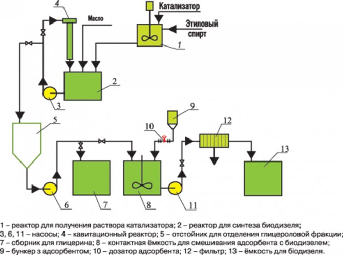 Dans un premier temps, la matière première est pressée pour obtenir de l'huile végétale. Ensuite, une réaction chimique a lieu avec des alcools monohydriques, à la suite de laquelle du biodiesel est obtenu.