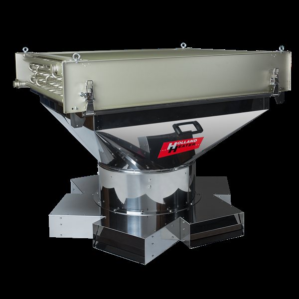 Ce type d'aérotherme est très efficace et fiable; il est principalement utilisé pour chauffer les fermes d'élevage, les entrepôts alimentaires, les installations de stockage et les locaux domestiques. Son avantage est une efficacité de 100%, ce qui réduit considérablement la consommation d'énergie et, grâce au chauffage direct, l'air chaud pénètre complètement dans la pièce. Le modèle de la gamme Holland Heater est un ventilateur qui peut être connecté à un ordinateur climatique. Cet aérotherme fournit un flux d'air de 40 mètres à une charge nominale de 80 à 120 kW (selon la taille). Ce ventilateur est capable de déplacer environ 7700 mètres cubes d'air par heure. La puissance du moteur est de 1150 watts, le nombre de tours est de 1400. Ce ventilateur est équipé d'une bague spéciale antibruit et d'une cellule photoélectrique de sécurité. Si la cellule photoélectrique détecte l'allumage de l'aérotherme, le système arrêtera de fournir le diesel. De plus, l'aérotherme est équipé d'indicateurs LED qui indiquent l'état de l'appareil et identifient les dysfonctionnements.