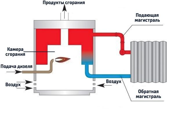 Sinon, le principe de fonctionnement des chaudières diesel domestiques est standard: