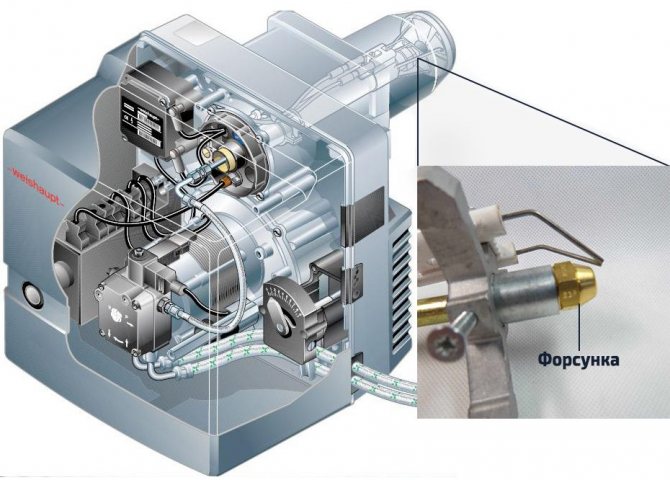 Les chaudières de chauffage au diesel ne diffèrent des chaudières à gaz que par un brûleur: elles sont équipées d'un turbocompresseur, qui fournit la pression requise et atomise le carburant à travers la chambre de combustion.