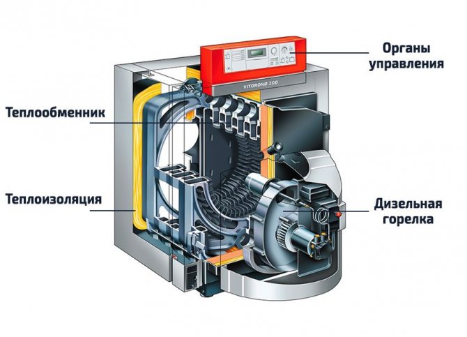 Le dispositif des chaudières diesel à l'aide de l'exemple de Viessmann Vitorond 200