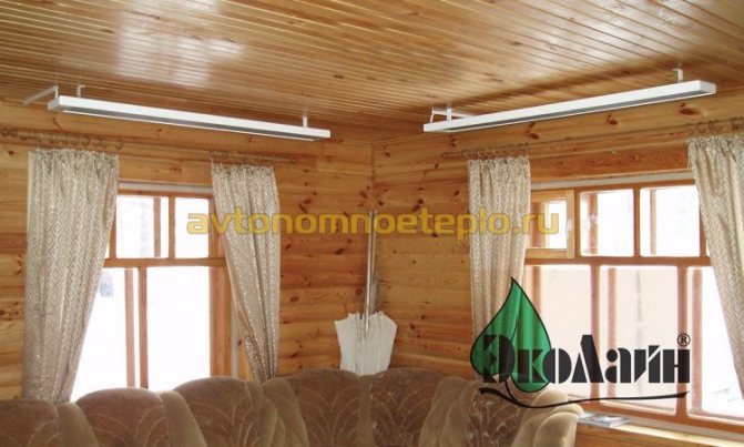 Les radiateurs infrarouges Ecoline sont d'un grand intérêt. Ils se présentent sous la forme d'un panneau rectangulaire avec un corps en métal blanc ou beige avec une plaque d'aluminium argentée. Fixez une telle structure au plafond plus près de la fenêtre. Ecoline fait référence aux radiateurs infrarouges fonctionnant sur la base d'un rayonnement à ondes longues, adaptés au chauffage de tous types de locaux, entrepôts et bureaux, ateliers de production et concessionnaires automobiles.