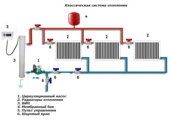 La disposition des canalisations et des connexions des radiateurs est la même que dans le chauffage de l'eau.La différence est que la chaudière électrique est conçue pour fonctionner avec un petit nombre de radiateurs, il ne sera donc pas possible de chauffer une grande surface.