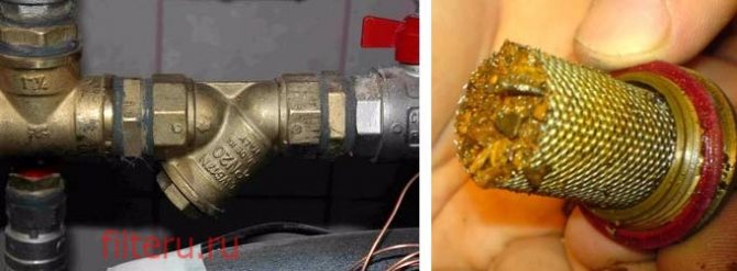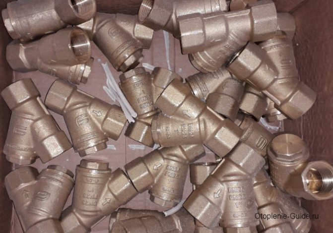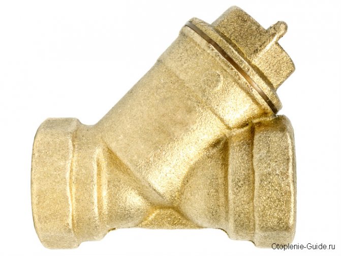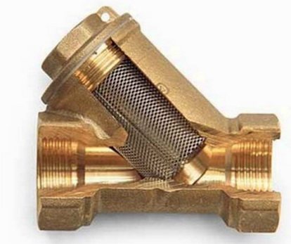 Dans la plupart des cas, des crépines en laiton sont installées dans le système de chauffage domestique. Ils sont simples, mais ils font leur travail. Toutes les particules portées par l'écoulement d'une taille supérieure à 0,5 mm sont retenues par un treillis métallique et se déposent dans un puisard. Le filtre est extrêmement bon marché, facile à installer et à entretenir.