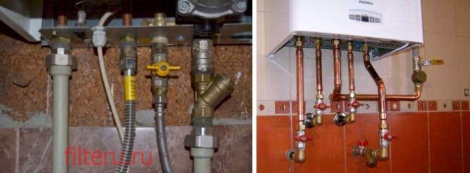 Avec une chaudière automatisée, le filtre est installé sur la conduite de retour devant l'entrée de la chaudière - entre la vanne d'arrêt et la vanne d'arrêt de la chaudière.