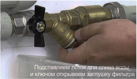 Mais vous devez d'abord fermer les robinets d'arrêt, qui doivent être installés près du filtre à boue des deux côtés. Sinon, grâce à lui, vous pouvez libérer tout le liquide de refroidissement du système, et la première partie passera également sous pression ....