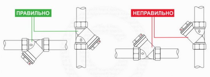 L'expert a conseillé: ne le mélangez pas. La négligence dans l'installation du filtre entraînera l'arrêt du système et une éventuelle panne de l'équipement. Le sens de l'écoulement du fluide est indiqué par une flèche sur le corps du collecteur de boue. N'installez le filtre que correctement par rapport au sens d'écoulement.