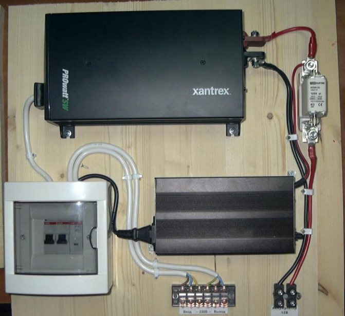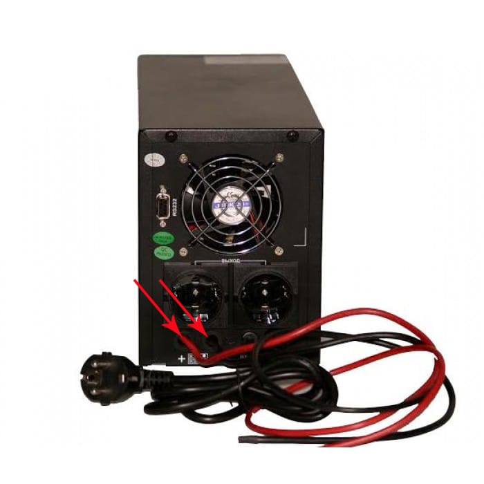 - Vers ces terminaux connecter l'onduleur, et nous équipons l'entrée d'alimentation d'un fil avec une prise pour la connexion au réseau.