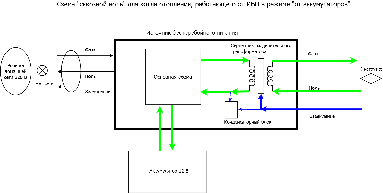 Les normes et règles n'interdisent pas la conduction de microcourants à travers le fil. En fonctionnement à partir du réseau primaire, cela ne pose pas le moindre problème, mais lorsque l'alimentation est fournie à partir d'une alimentation sans interruption non mise à la terre et complètement isolée (pas de phase, pas de zéro, il n'y a que deux sinus en opposition de phase), soit certaines fonctions échouent , ou l'ensemble de l'appareil. Cela ne s'applique pas aux pompes de chauffage et aux chaudières au maximum.De plus, un passage à zéro ne leur suffit pas en cas de panne de courant - ils ont besoin d'une résistance à la sortie de l'alimentation de secours en cas de panne de courant, fonctionnement RCD.