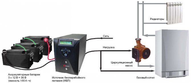 Important! Il est inacceptable de connecter d'autres appareils, y compris des pompes (profondes, par exemple) à l'UPS dans le cadre du système de chauffage.