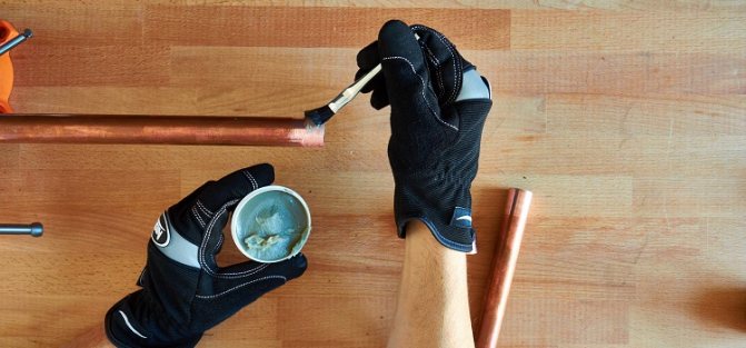 Dans ce dernier cas, non seulement de la soudure est nécessaire, mais également une pâte de flux pour le brasage des tuyaux en cuivre.