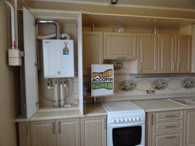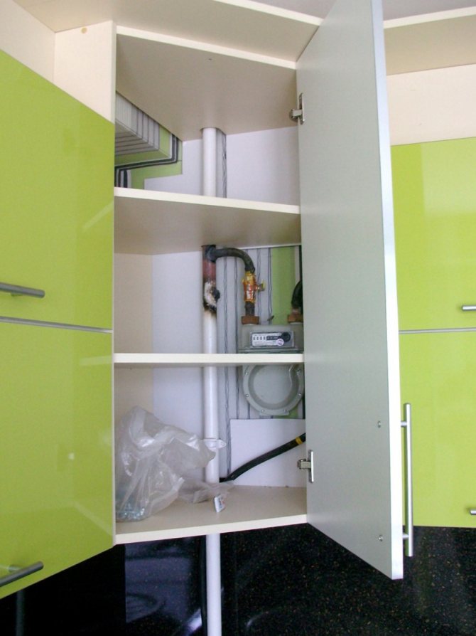 Dans la cuisine, en plus des tuyaux et des radiateurs du système de chauffage, il y a des tuyaux de gaz, qui peuvent apporter beaucoup d'inconvénients et ne répondent pas aux exigences esthétiques de l'hôtesse.