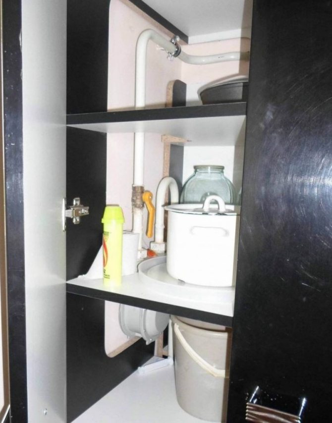 Devant le propriétaire de l'appartement, la question se pose inévitablement de savoir comment cacher le tuyau de vidange dans la salle de bain, qui est adjacente au lavabo. Pour ce faire, vous pouvez utiliser une petite table de chevet, qui s'installe de la même manière qu'une trousse à crayons. Dans les salles de bain, des chauffe-eau sont souvent installés, des tuyaux leur sont fournis par le bas. Comme alternative à la table de chevet, un beau panier à linge convient, qui est placé directement sous le lavabo.