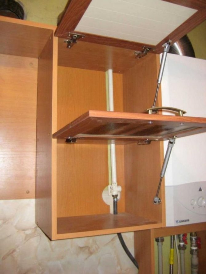 armoires et étuis à crayons sans paroi arrière conformément à l'ensemble de cuisine. De cette manière, les tuyaux horizontaux et verticaux sont fermés.