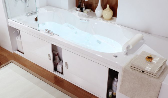 Le cadre fonctionnel n'est pas seulement une boîte garnie de carreaux, mais une structure pratique qui peut être démontée si vous le souhaitez. S'il y a des fuites, il y aura toujours un accès libre à ces zones.