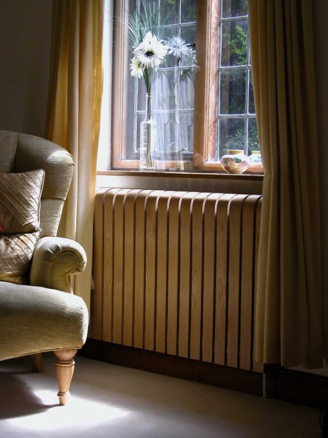 Mais dans les vieilles maisons, vous pouvez toujours trouver de vieux radiateurs, ils ne rentrent pas du tout à l'intérieur de la pièce. Les propriétaires sont confrontés à la question de leur décoration.