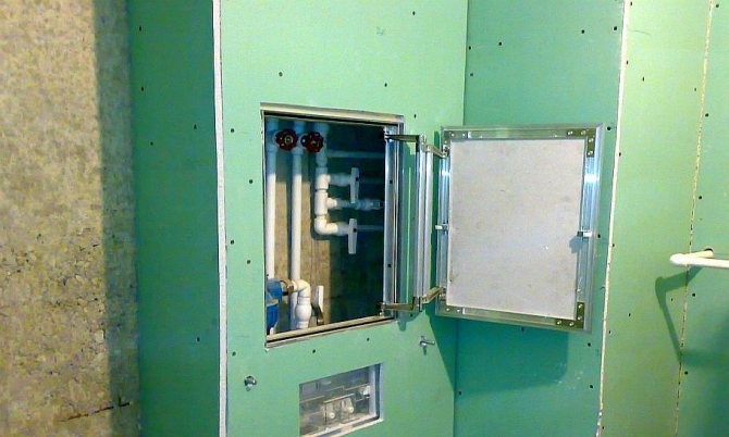 Un faux mur est réalisé de la même manière. Il est le plus souvent utilisé pour masquer les élévateurs. La structure est formée de profilés métalliques avec un décalage d'environ 30 cm de la paroi principale. Dans le même temps, la surface utile de la pièce diminuera, mais il sera possible de masquer les compteurs et les filtres. Pour donner accès à ces éléments, il est nécessaire de découper une petite trappe d'inspection.