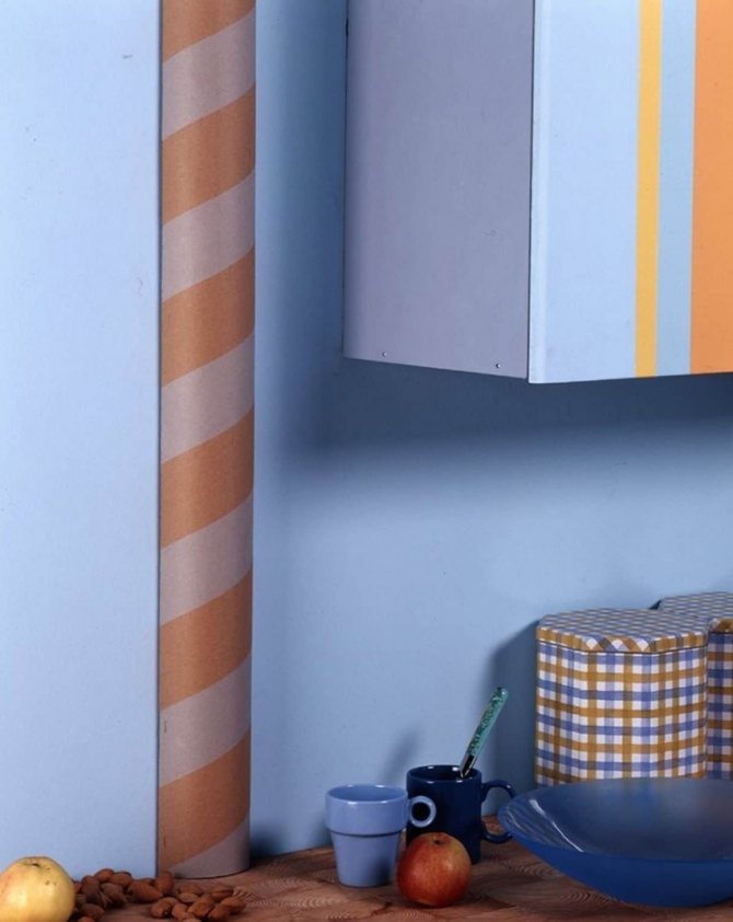 boîte en placoplâtre pour tuyaux verticaux. La couleur et la taille sont choisies en fonction de l'intérieur existant ou prévu. De plus, la boîte peut non seulement remplir la fonction de cacher le tuyau, mais aussi être un lieu de stockage.