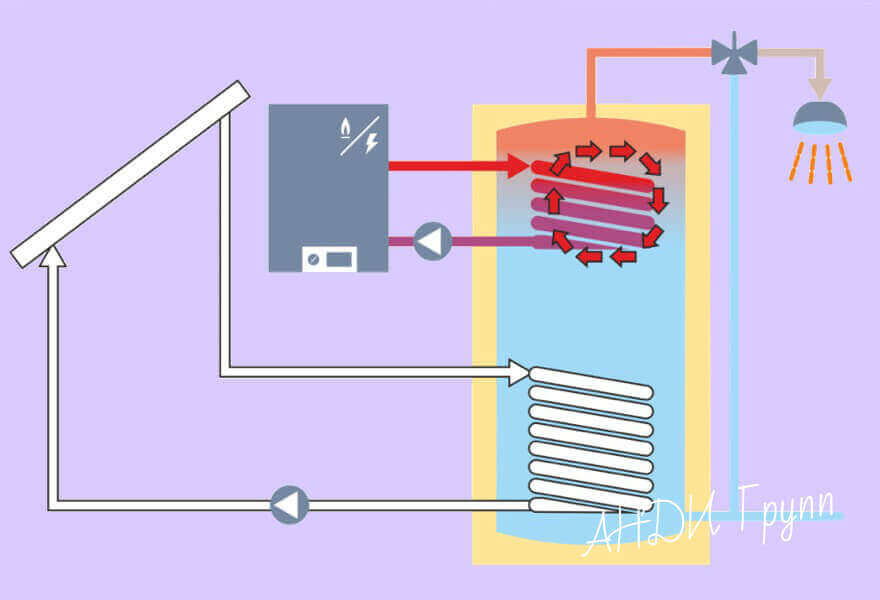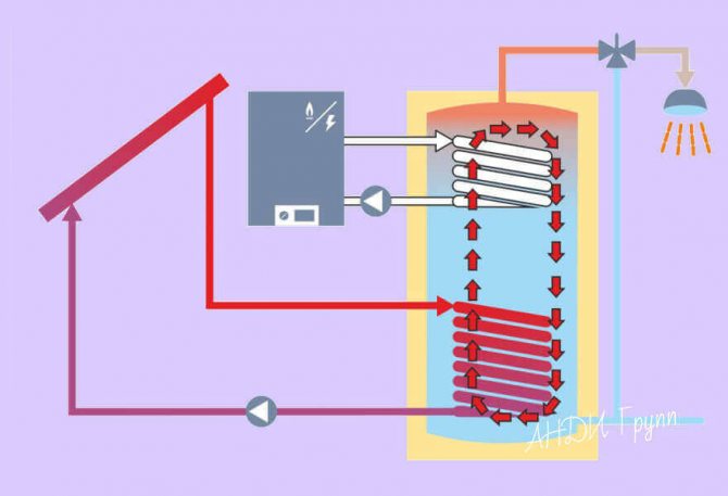 La présence d'unités d'échange de chaleur dans l'unité vous permet de recevoir de l'eau chaude pour les besoins domestiques 24 heures sur 24, de chauffer le réservoir du capteur solaire, de réchauffer les allées de la maison et d'utiliser la chaleur utile aussi efficacement que possible pour tout autre pratique fins.