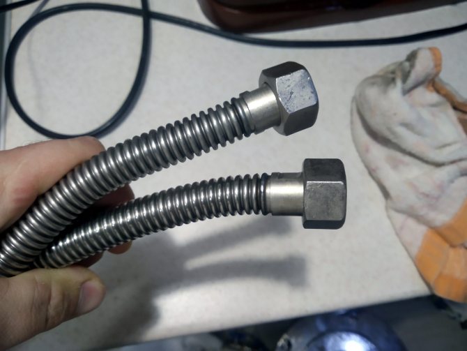 Deux morceaux de tuyaux d'égout émergent des murs adjacents des Eurocubes avec des prises vers eux. Nous les connectons avec un insert court.