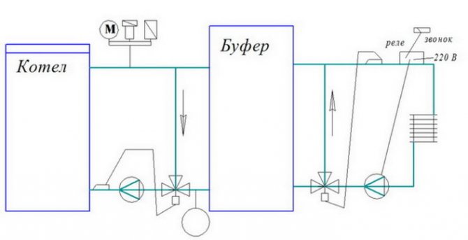 Ce problème est résolu en installant un accumulateur de chaleur qui, au moment de l'augmentation de l'activité, accumulera de la chaleur dans le réservoir. Ensuite, lorsque le bois brûle et que la chaudière passe en mode veille passif, le tampon transfère l'énergie collectée au liquide de refroidissement, qui se réchauffe et commence à circuler dans le système, chauffant la pièce en contournant le dispositif refroidi.