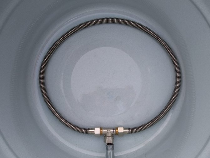 Pour chauffer l'eau dans le tampon, vous devez prendre un tube en cuivre d'un diamètre de 2-3 centimètres et d'une longueur de 8 à 15 m (en fonction de la taille du réservoir). Il devra être plié en spirale et placé à l'intérieur du réservoir.