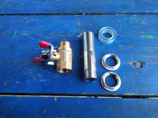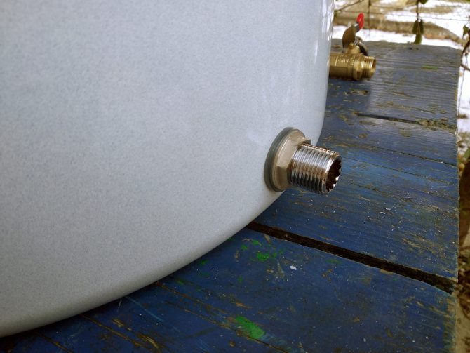 La partie supérieure du canon fera office de batterie dans un tel modèle. De là, vous devez retirer le tuyau de dérivation pour la sortie de l'eau chaude et faire la même chose par le bas pour l'entrée d'eau froide. Équipez chaque sortie d'une vanne pour contrôler le débit de liquide dans la zone de stockage.