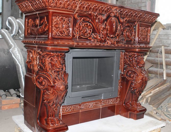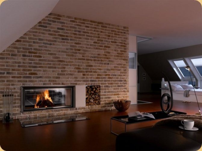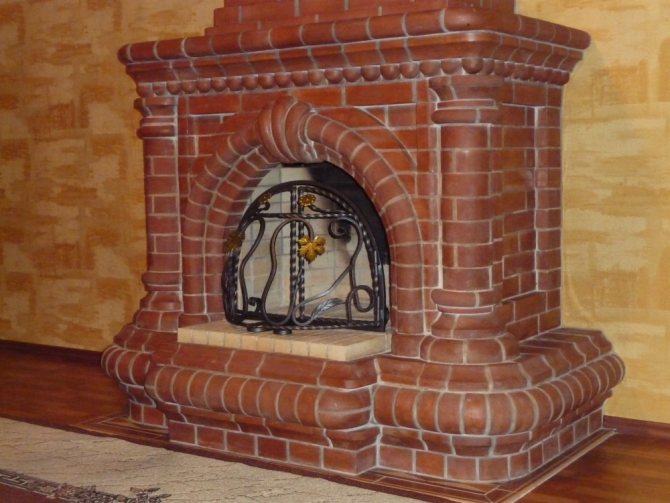 Le poêle-cheminée peut être conçu sur mesure pour presque toutes les configurations. Le carrelage mettra l'accent sur l'individualité de l'intérieur. En règle générale, des briques de travail de haute qualité (réfractaires) sont utilisées dans de telles cheminées.