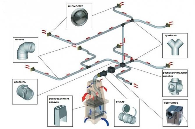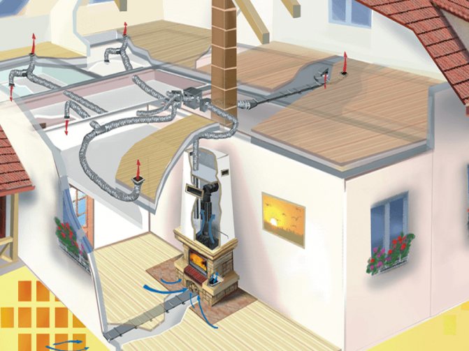 La distribution de l'air chauffé dans les pièces de la maison est effectuée à l'aide de canaux de canalisation installés dans les murs ou dans les plafonds.
